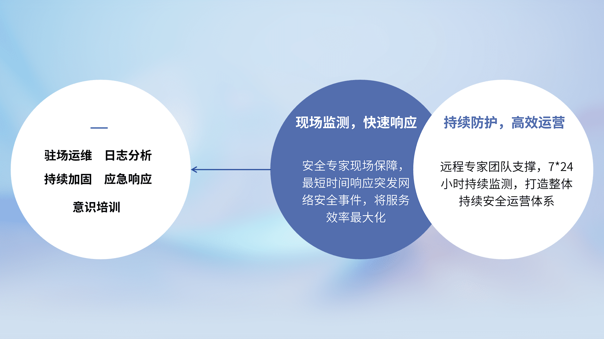 针对客户行业特性,,,,提供专属的一站式安全管理服务,,,帮助客户全面感知网络空间威胁,,,通过安全专家的线上、、、线下防护支持,,实现风险闭环,,,,将安全保障常态化,,,,为客户打造常态化安全运维运营服务。。。。